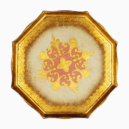 VASSOIO BAROCCO OTTAGONALE ORO/ROSA D. 37